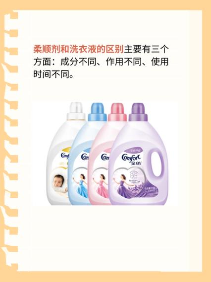 〖Three〗、洗衣液与柔顺剂的区别类似于洗发水与护发素,一个主要负责清洁,另一个则负责护理,两者不能互用。