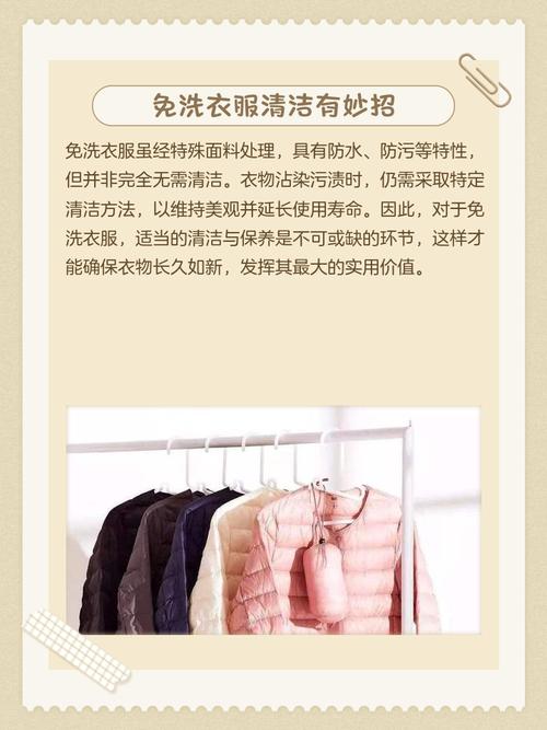 〖Three〗、免洗面料的衣服脏了,可以采取以下几种方法进行处理: 送到干洗店清洗 优点:干洗店能够专业地处理免洗面料衣物,有效避免衣物褪色、变形等问题,且干洗对衣服面料的损伤相对较小。 使用湿布擦拭 适用情况:当免洗面料衣物脏污不是很明显时,可以用干净的湿布在衣物表面轻轻擦拭,将污渍擦干净。