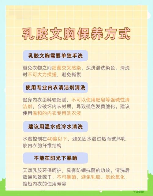 〖One〗、乳胶内衣胸垫是需要清洗的。以下是关于乳胶内衣胸垫清洗的相关建议:清洗方式:建议用手洗,不要用洗衣机洗,以免变形。可以在30℃40℃的温水中加入内衣专用洗涤液进行清洗,确保清洁产品温和无刺激,禁止使用漂白剂或消毒剂。清洗步骤:用手轻轻揉搓胸垫,或可用背带轻柔搓擦罩杯面及其余地方。