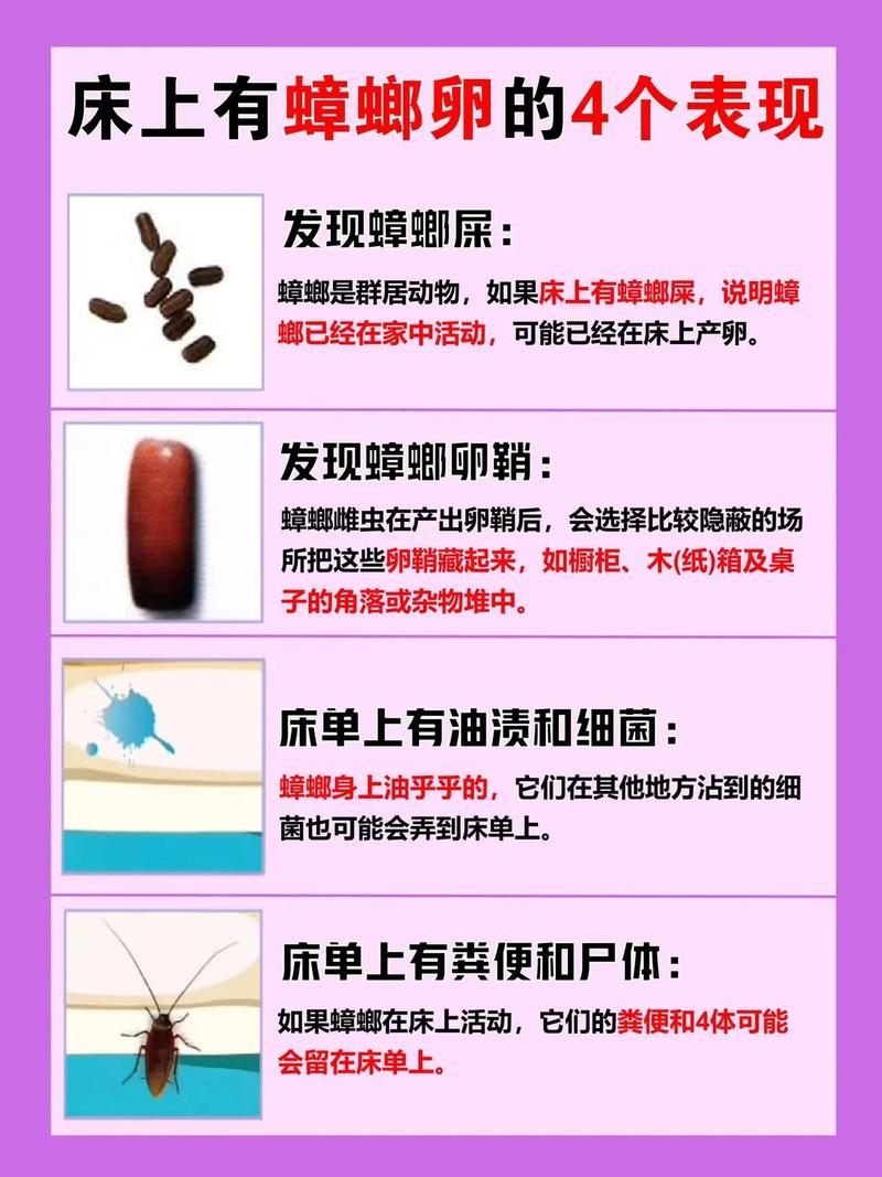 蟑螂卵怎么消灭最彻底 找老巢:蟑螂通常将蛋鞘放置在抽屉的侧缝和纸箱的缝隙中。 卵鞘有点像豆荚,颜色和蟑螂一样。 这些蛋鞘喷雾剂是无法杀死的,必须用沸水烫或烧。找“产房”:使用正规灭蟑药,将灭蟑药放在蟑螂活动的区域,形成保护带,隔离该区域的蟑螂,即使小蟑螂出生也可以消灭。