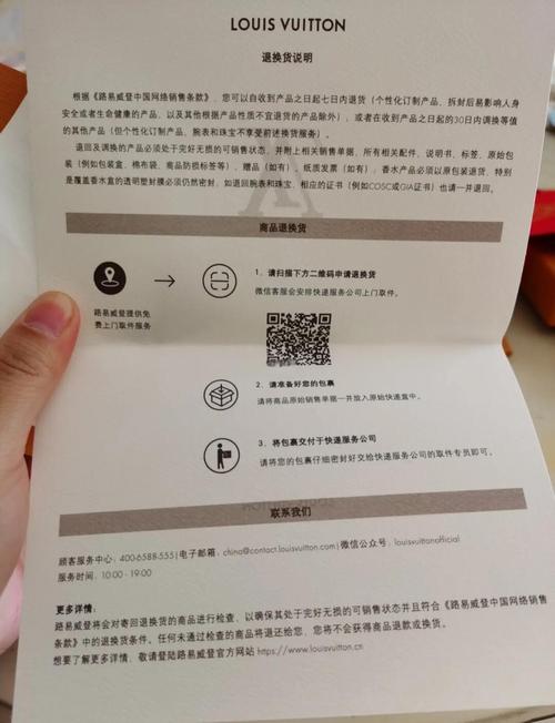 lv一般在专柜里购买的是不可以退货的,但能进行换货。换货时需注意以下几点:换货规则:换货不会弥补差价,而是抵消下次购物的金额或选取相同金额的商品。时间限制:换货需在首次购买后的30天内进行,且必须携带原购买凭证和原包装。