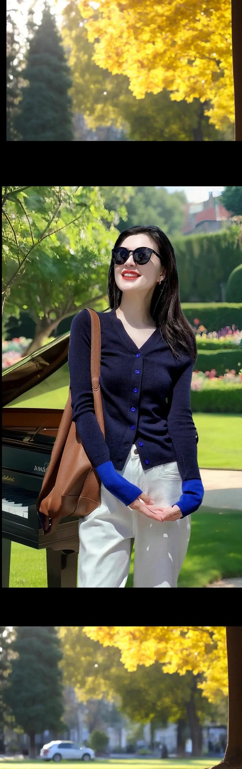 其实吧上身胖是可以穿针织开衫毛衣的,但是要注意衣服的领型和颜色的选取。深颜色有收缩感,给人视觉上显瘦的效果,比如黑色就是一个很显瘦的颜色。其次就是衣服的领形了,圆脸就选v字型的,在穿着时,开衫最下面的那一个扣子不要扣上,让他形成一个上v和下V的效果,这样更显瘦。