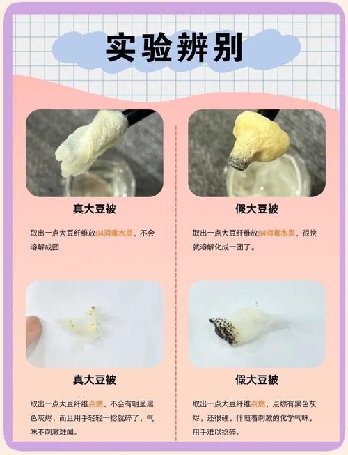 被子上标注的大豆纤维,如何鉴别真伪?一种简单的方法是通过燃烧辨别。燃烧大豆纤维时,会散发出类似烧黄豆的气味,燃烧后易成粉末状。这有助于区分是否为大豆纤维。另一个方法是检查被子上的大豆纤维含量。正规的大豆纤维被子,其含量通常不低于50%。而那些标注5『1』0%的大豆纤维含量的被子,通常不能称作真正的大豆纤维被子。