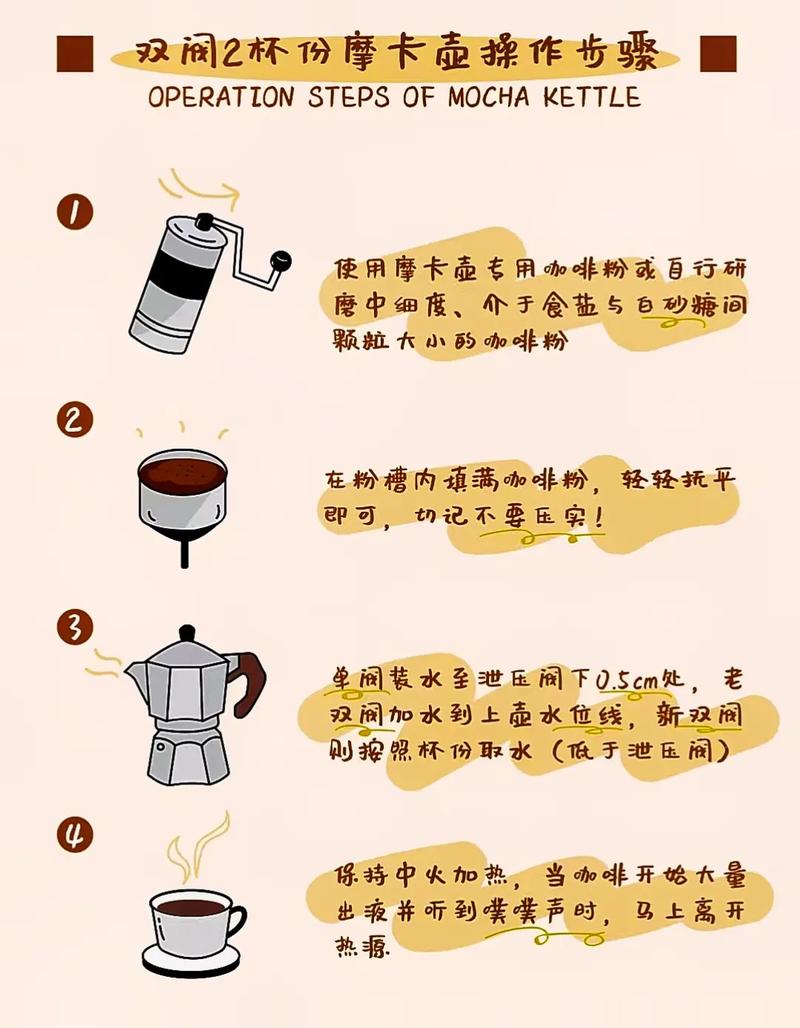 综上所述,使用摩卡壶泡咖啡时需要注意多个细节,包括新壶处理、产品材质、咖啡豆与研磨度、粉量控制、水位控制、组装与加热、火源控制、萃取过程、清洁与保养以及其他注意事项等。只有掌握了这些技巧和方法,才能制作出美味且安全的咖啡。