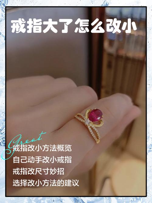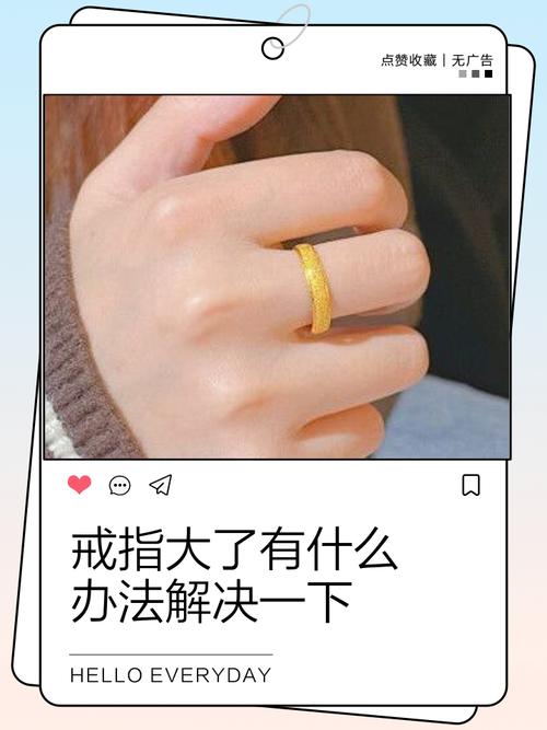 使用绕线法:当戒指尺寸过大时,容易滑落。为了解决这个问题,您可以在戒指外圈绕上一圈柔软的细绳,增加戒指的宽度。确保所选绳子的颜色与戒指相协调,以保持整体美观。粘贴胶带法:另一种方法是在戒指内圈粘贴一层薄薄的塑料膜或胶带,以此来增加戒指的体积,防止佩戴时脱落。
