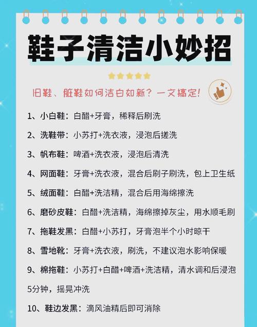 家里清理发霉鞋子霉斑有不少小妙招。以下为你介绍几种常见且实用的方法。方法一:酒精擦拭法,准备适量酒精和干净的布,将酒精倒在布上,轻轻擦拭霉斑处,酒精具有杀菌消毒作用,能有效去除霉斑,之后用清水冲洗,自然晾干。方法二:白醋清洁法,把白醋和水按1:1的比例混合,用软毛刷蘸取溶液,刷有霉斑的地方,再用清水洗净,能去除霉味和霉斑。