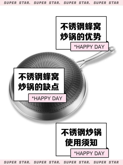 〖Four〗、蜂巢炒锅与铁锅各有优缺点,具体选取取决于个人需求和烹饪习惯。蜂巢炒锅:优点:外观新颖,具有不锈钢材质的外观,内在为不粘锅形式,烹饪难度较低,适合新手使用。缺点:升温慢,储热性能良好但控温较难,容易糊锅且难以清理。