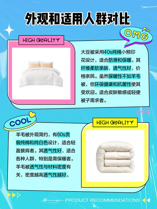 〖Three〗、从综合性能和舒适度来看,羊毛被优于大豆被,尤其适合追求高品质睡眠的人群。然而,羊毛被的费用通常高于大豆被,消费者在选取时应根据个人需求和预算进行权衡。