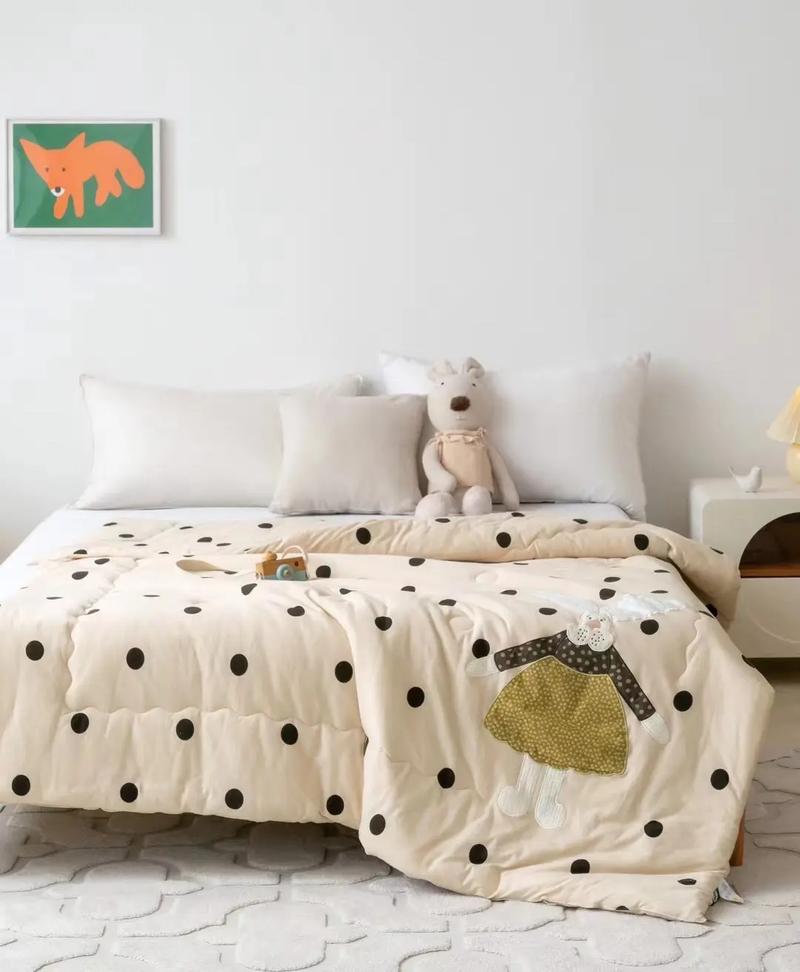 蚕丝被:蚕丝被以天然蚕丝为填充料,其质地柔软顺滑,透气性佳。春秋气温多变,蚕丝被能很好地调节温度,让身体保持干爽舒适,给人亲肤的睡眠感受。 大豆纤维被:这种被子填充的是大豆蛋白纤维,具有良好的保暖性与透气性。而且重量较轻,盖在身上没有压迫感,对皮肤刺激性小,适合春秋日常使用。