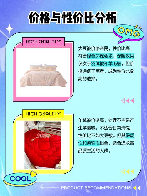 如果您追求极致的保暖性能,不介意费用和环保问题,可以选取羊毛被。如果您注重透气性和性价比,希望选取一款环保的被子,大豆纤维被将是一个不错的选取。最终的选取应根据个人的需求和预算来决定。