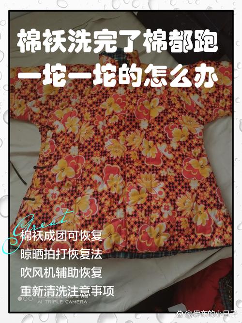 〖Four〗、方法一:拍打晾晒把成团棉衣挂在通风处晾晒,然后用手反复拍打,能让内部棉花逐渐蓬松。 方法二:用吹风机吹将棉衣铺平,用吹风机热风档远距离吹,边吹边抖动,有助于打散结块。方法三:用网球辅助把棉衣放入烘干机,同时放几个网球进去,烘干过程中网球不断滚动,可使棉衣恢复蓬松。