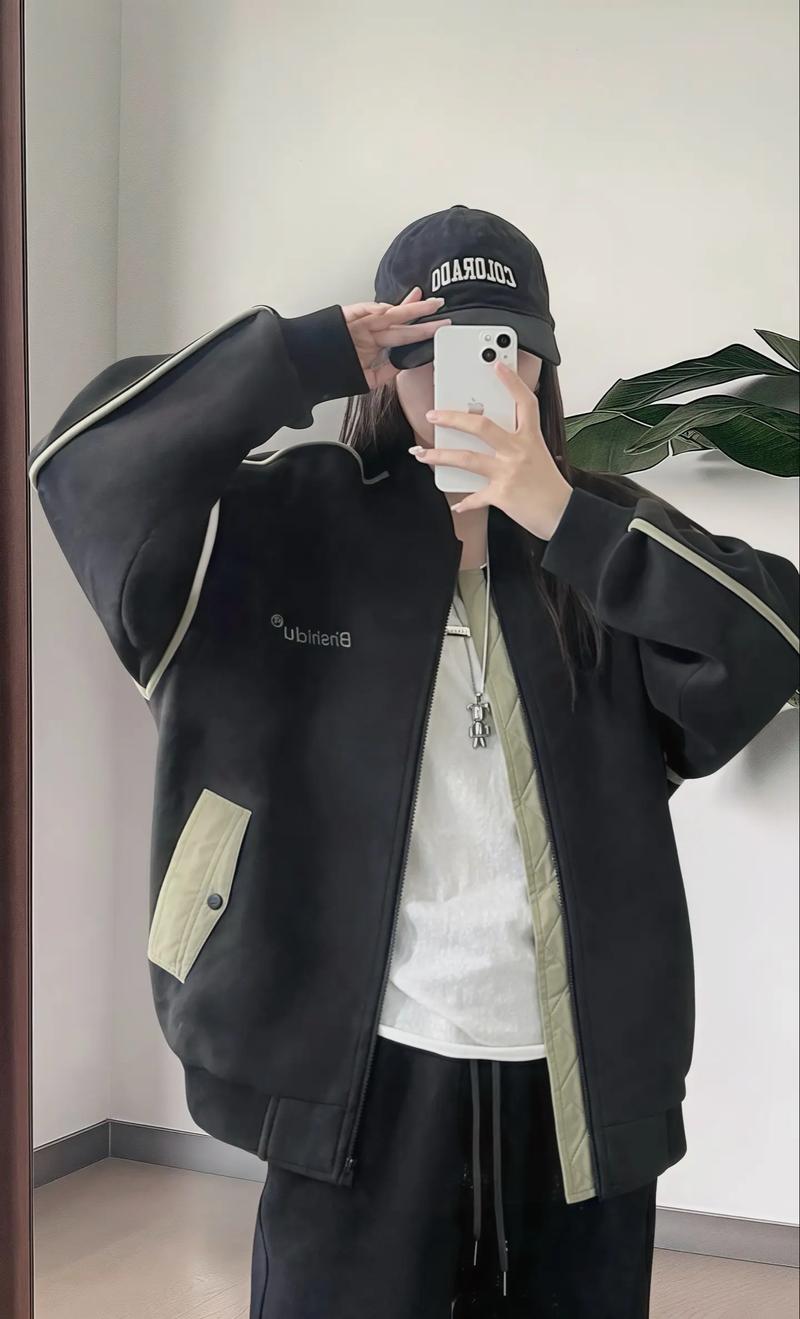 〖One〗、层次感搭配:棒球服适合打造层次感的穿搭。可以在棒球服内搭配t恤、衬衫或薄毛衣,根据天气变化调整穿着。例如,在春秋季节,可以选取一件格子衬衫作为内搭,露出领口和袖口,增加造型的丰富性。下装选取:棒球服与不同风格的下装搭配会呈现出不同的风格。