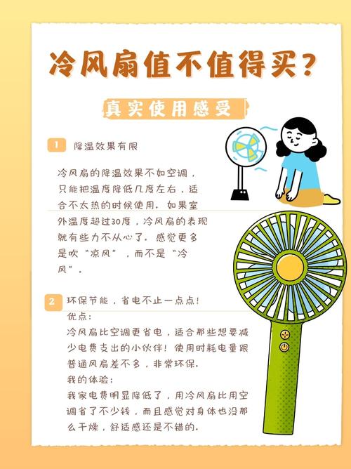 〖Four〗、夏天用冷风扇确实能降温,但效果受环境条件限制,无法与空调相比。冷风扇(又称空调扇)通过水分蒸发吸热的原理降低周围温度。它内置的水箱或冰晶盒能持续为空气加湿,吹出的风比普通风扇低3『8』℃。