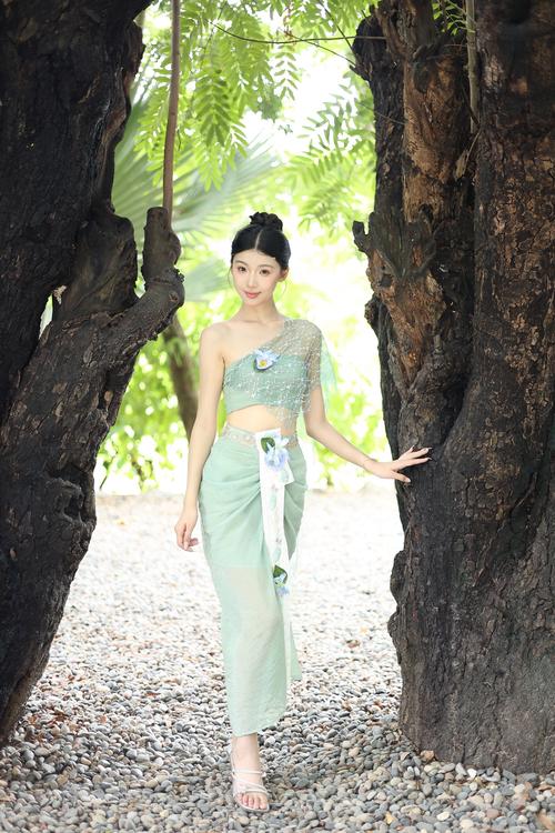 上衣:上衣为无领右衽短衫,设计简洁大方,既符合日常穿着的舒适性,又体现了傣族服饰的独特韵味。下装:下着裙边微膨的筒裙,腰部叠加十余层彩带,这种设计不仅美观,还展现了傣族妇女精湛的手工艺和独特的审美观念。