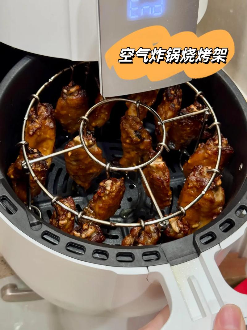 〖Three〗、空气炸锅烤架底部的橡胶不需要去掉。空气炸锅的烤架是每个品牌都配有的,由于烤架底部的橡胶是特殊的材质制成的,有耐热的功能。所以工作中不用拿掉。烤架是为了增加烹饪表面面积的,可以烤串串,鸡翅等等。可以直接把食物放在烤架上一起放入空气炸锅的炸篮里面,之后的操作就和正常使用炸锅一样。