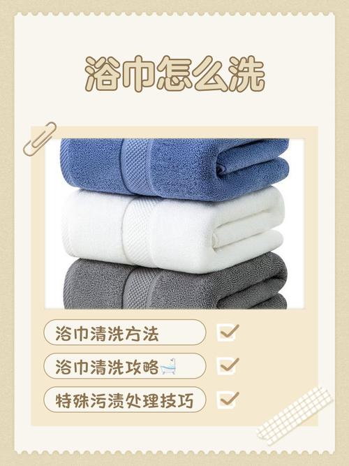 〖Four〗、常规清洗:白色浴巾的日常清洗建议使用温和的洗涤剂,并在温水(约30°C)中进行。避免使用漂白剂或强碱性清洁剂,以免损伤浴巾纤维。去除硬度和起球:若浴巾变硬或起球,可在约5千克(即3斤)的水中加入30克纯碱,或将浴巾放入含有适当柔软剂的溶液中,煮沸10分钟。