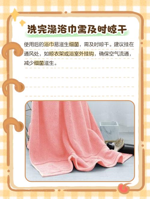 为了保持浴巾的清洁与卫生,建议每隔一星期进行一次清洗。在清洗过程中,可以适当加入一些消毒水,以增强杀菌效果,防止细菌滋生。使用浴巾后,细菌和污垢会慢慢积累。为了减少细菌的滋生,确保个人卫生,建议每次使用后尽快清洗。不过,如果浴巾明显脏污或有异味,应及时清洗。
