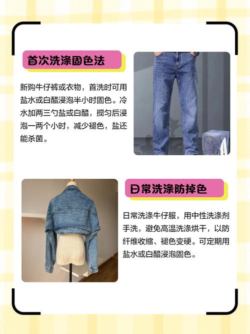 〖Six〗、为了防止牛仔衣在首次清洗时褪色,应采取以下步骤进行护理: 在洗涤前,将牛仔衣翻转至内侧朝外,以减少洗涤过程中染料的脱落。 使用温和的洗涤剂,如中性洗衣液或专为牛仔布设计的清洁剂,以冷水或微温的水进行手洗。避免使用热水,因为高温可能会导致染料溶解。