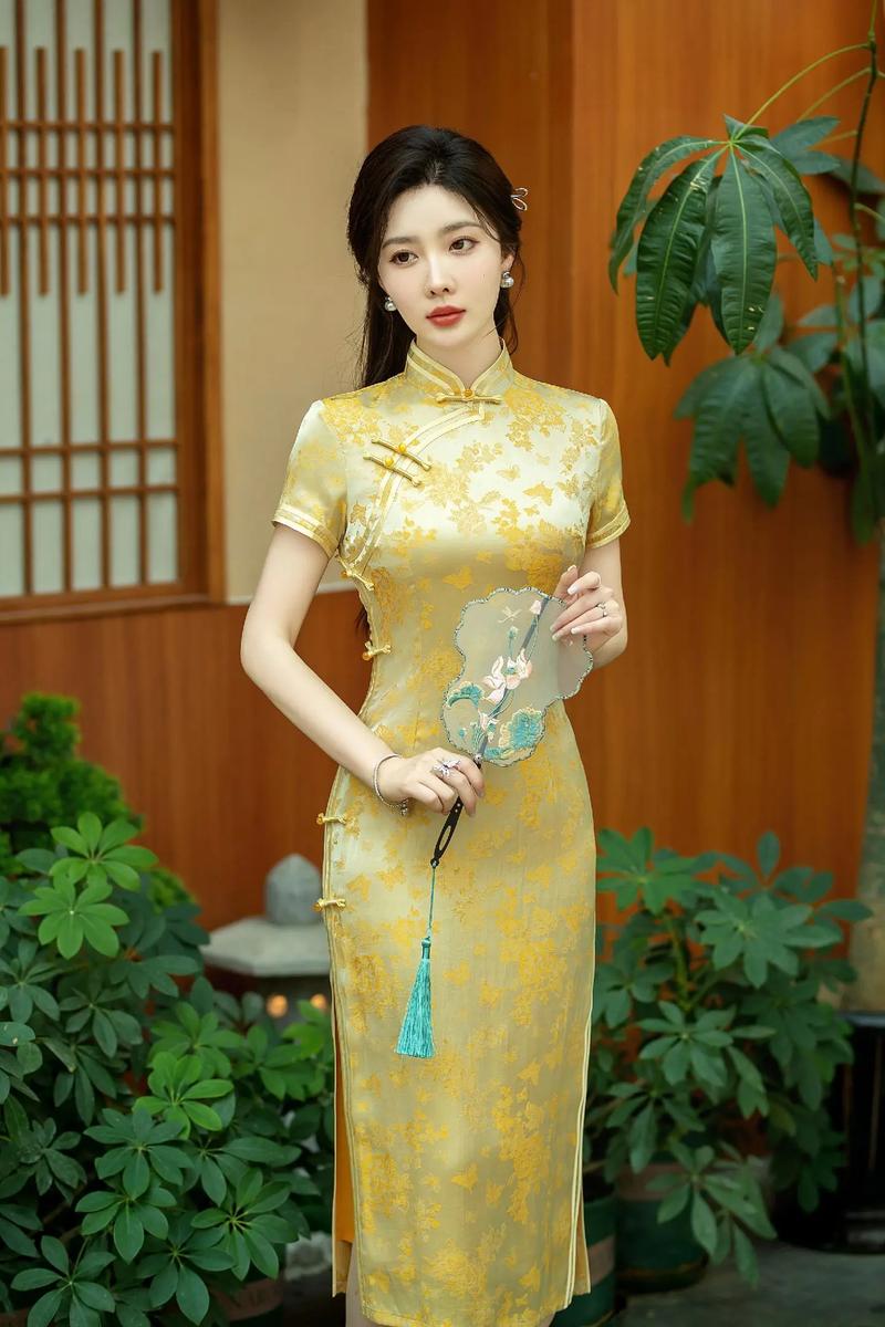 〖Two〗、五五分身材穿旗袍也可以很好看,但需注意选取合适的款式。选取建议如下: 选取高腰线款式:高腰线的旗袍能在视觉上拉长腿部线条,使整体比例看起来更为协调。 避免传统显腿短样式:传统的低腰线或直筒型旗袍可能会加剧五五分身材的比例问题,应尽量避免。